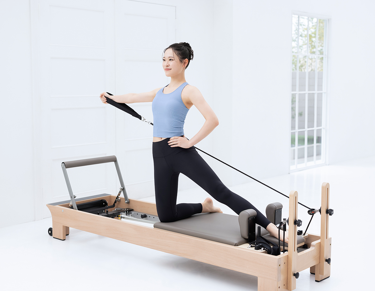 マシンピラティスは、カラダの動きをサポートする専用マシン「リフォーマー」を使用し、気になる部位にピンポイントでアプローチできるため、効率的にトレーニングを行うことができます。多彩なプログラムとインストラクターによる丁寧なサポートで、初心者の方でも安心してレッスンにご参加いただけます。