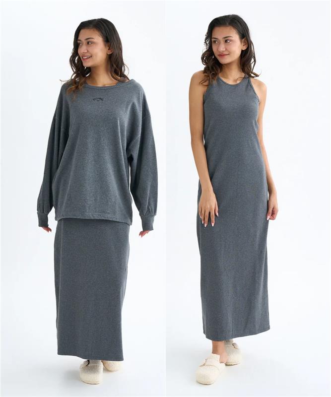 ミニフレンチテリー素材のオフショルダートップスとマキシワンピースのセット