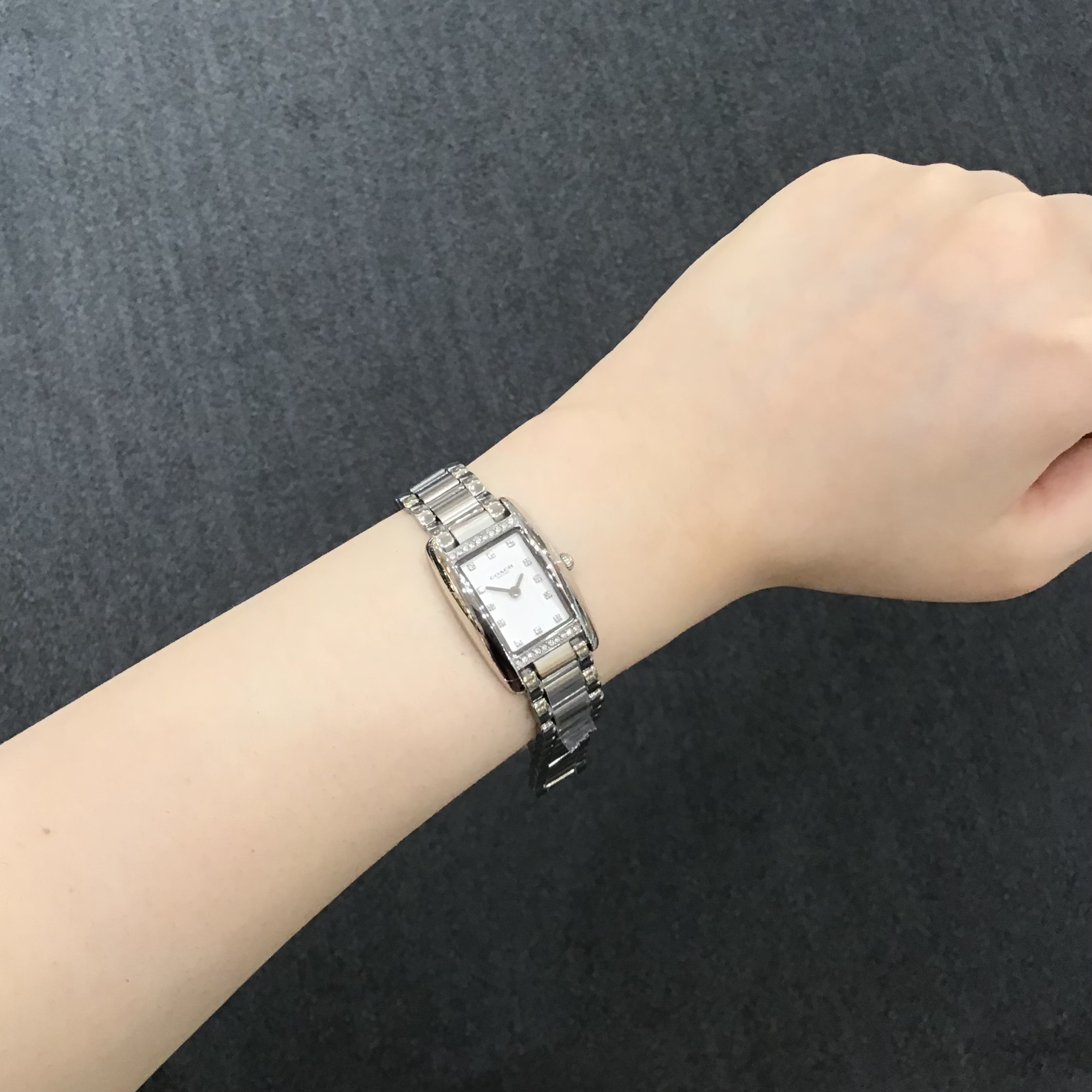 本日は【COACH】から、ストーンの輝きが華やかなスクエア型モデルをご紹介します!