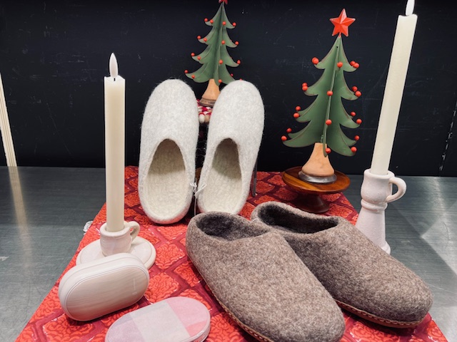ハンドメイドルームシューズウール100%のぽかぽかルームシューズです