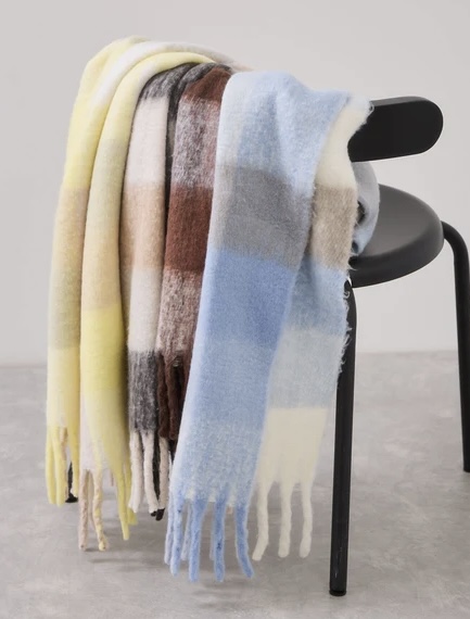 ふわふわフリンジチェックマフラー/静電気防止