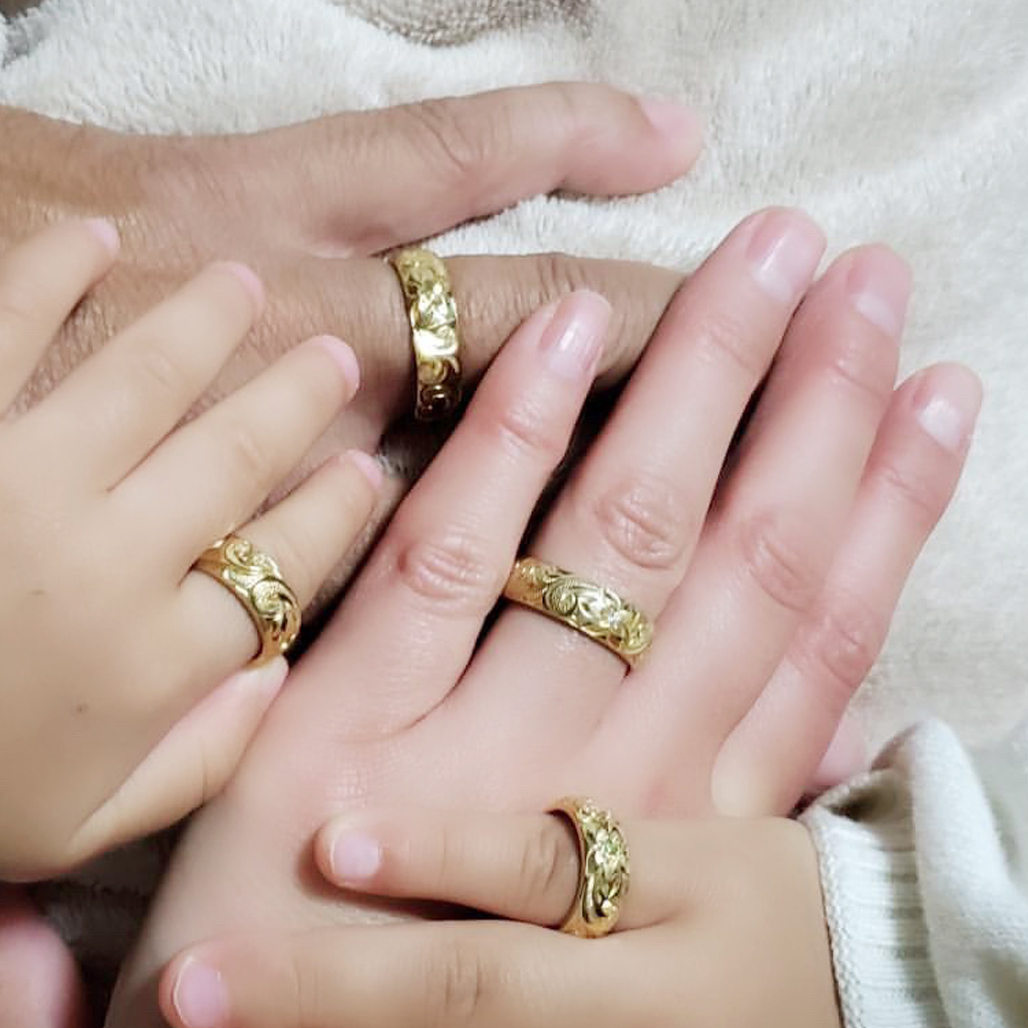 ご夫妻の結婚指輪と、お子様のためのベビーリングを2点、合計4点のリングを製作いたしました。