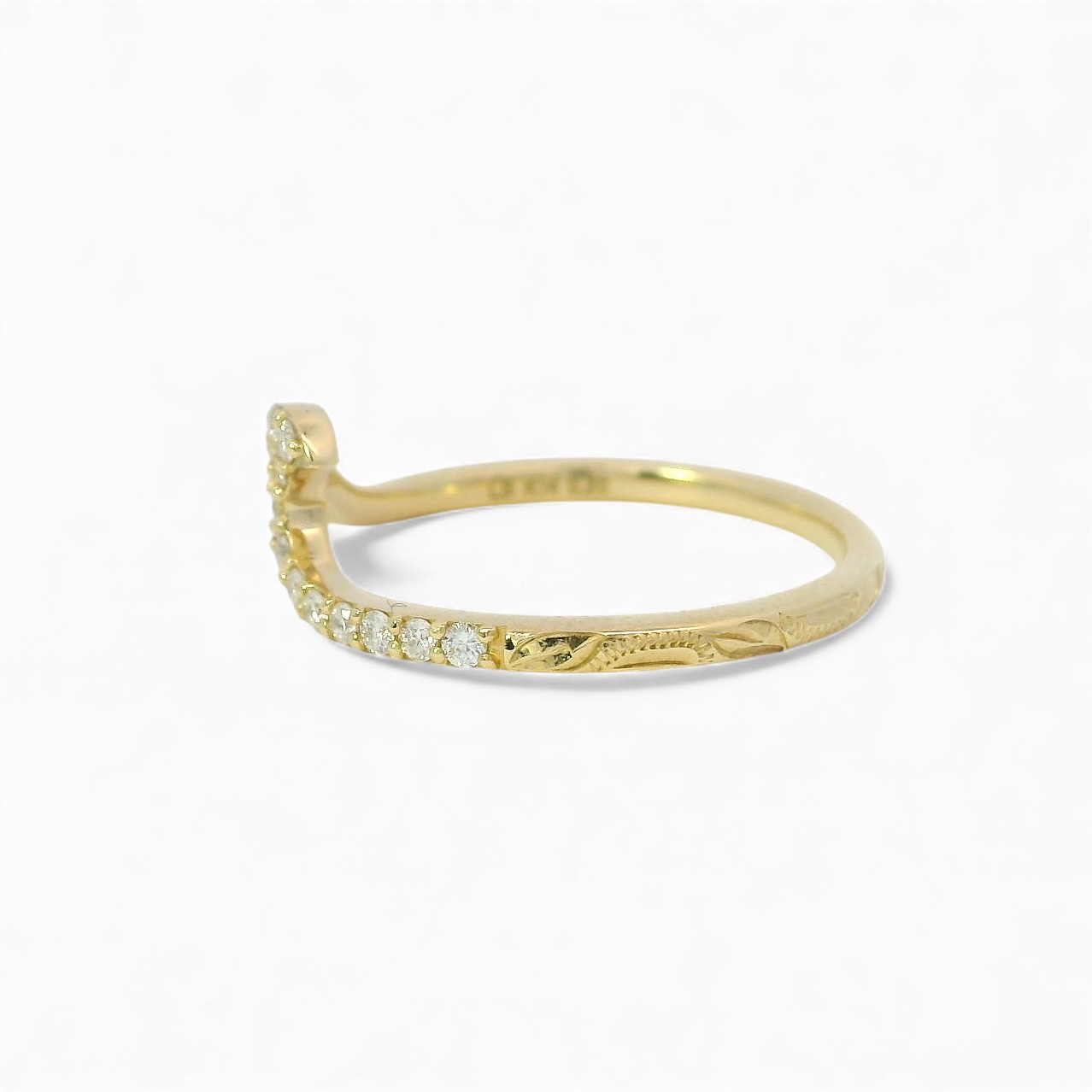 光を受けるたびに手彫りならではの陰影が生まれ、ダイヤとは異なる“彫りの輝き”が楽しめます。