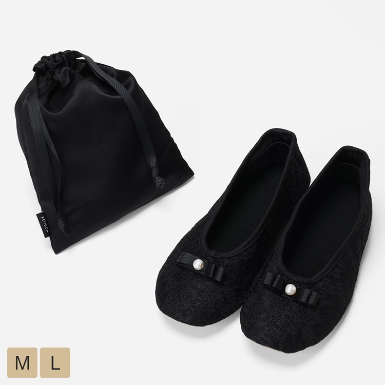 リボンとパールの装飾付きで足元を華やかに演出します