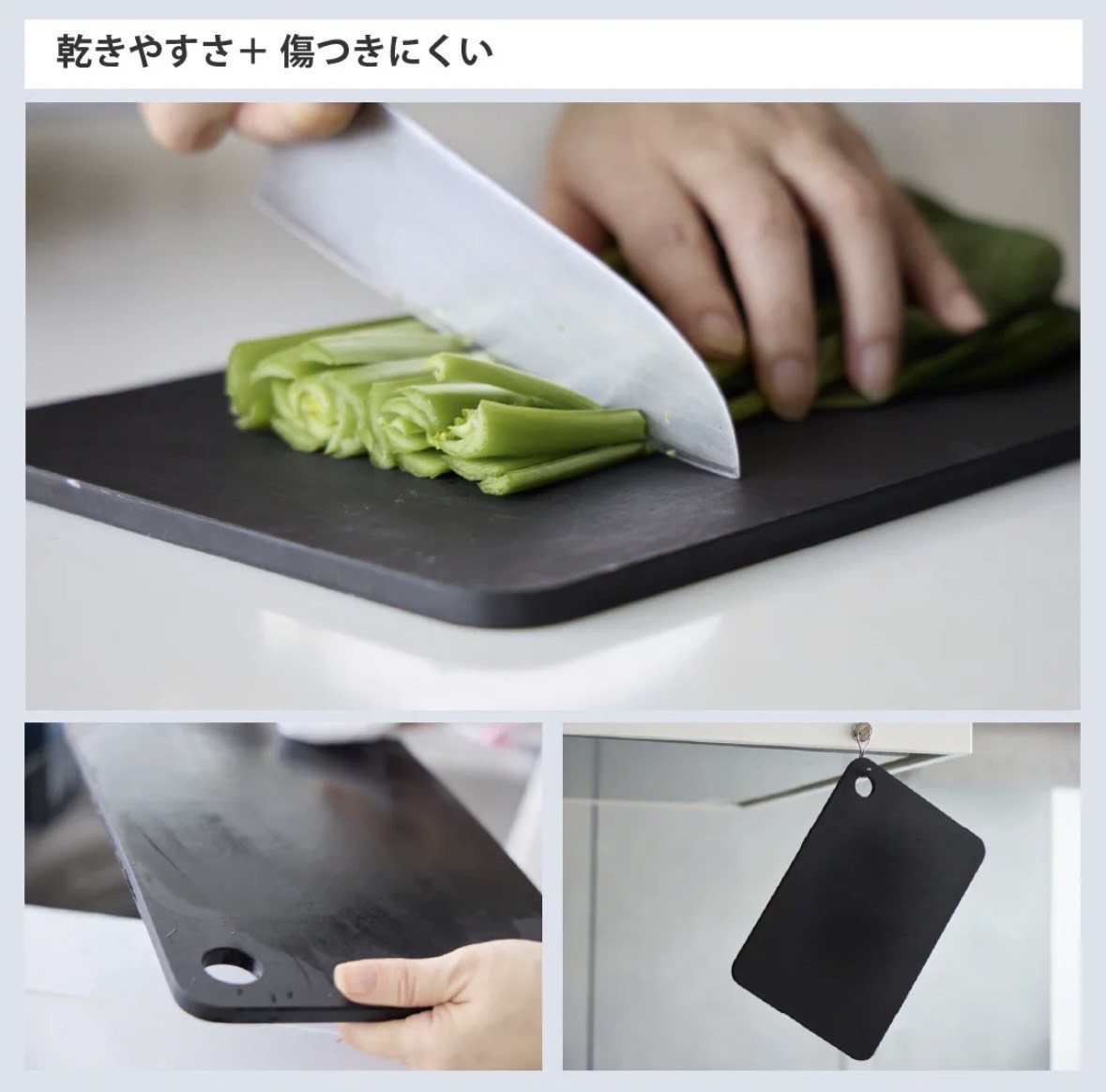 乾きやすさ、傷つきにくい合成ゴムでできたカッティングボード