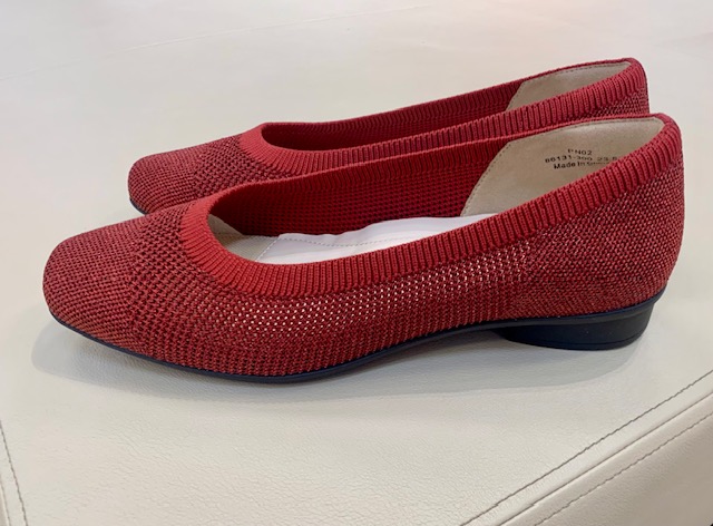 ニット素材で足当たりがやさしく、締め付け感の少ない履き心地