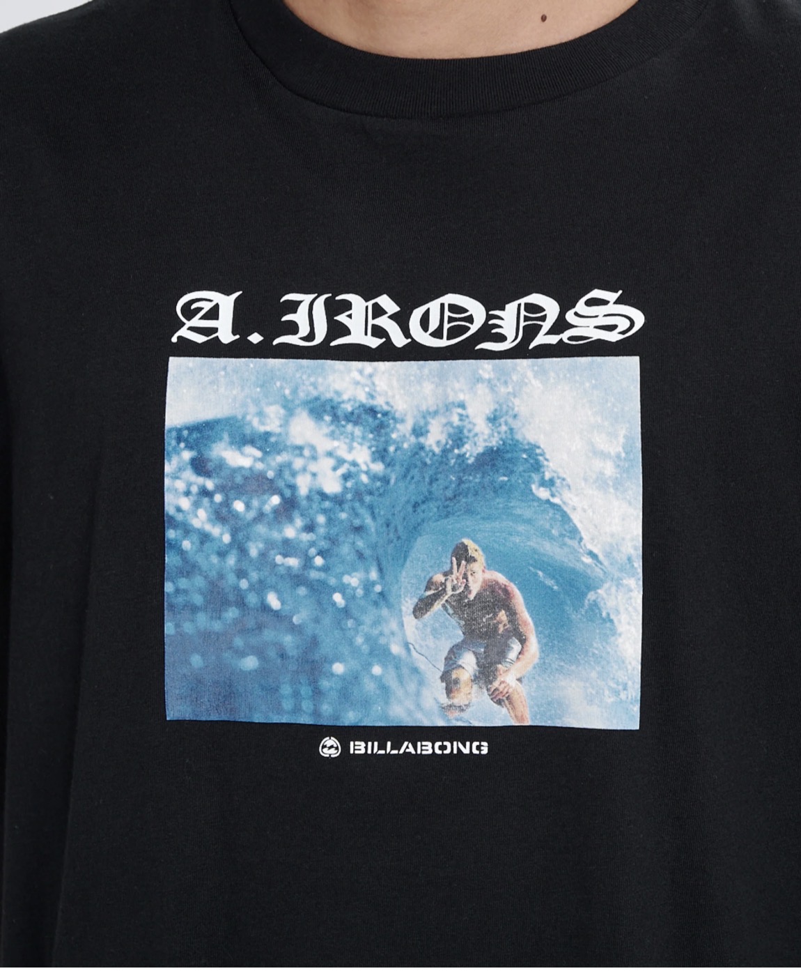 左裾にあしらったIronsとBILLABONGのロゴグラフィックとサイドのラインがポイント