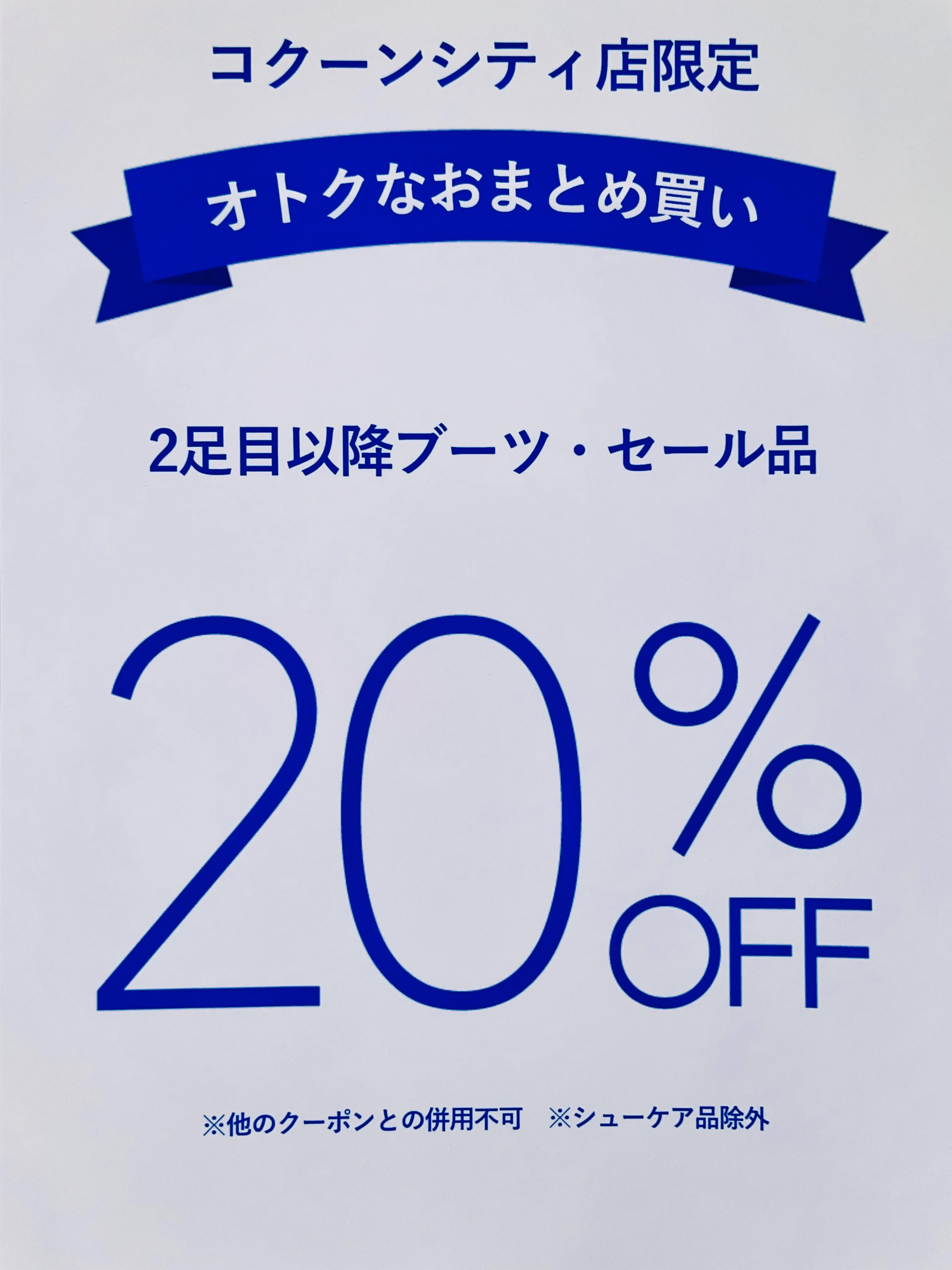 ファイナルセール!2足目以降セール品・ブーツが20%OFF!!