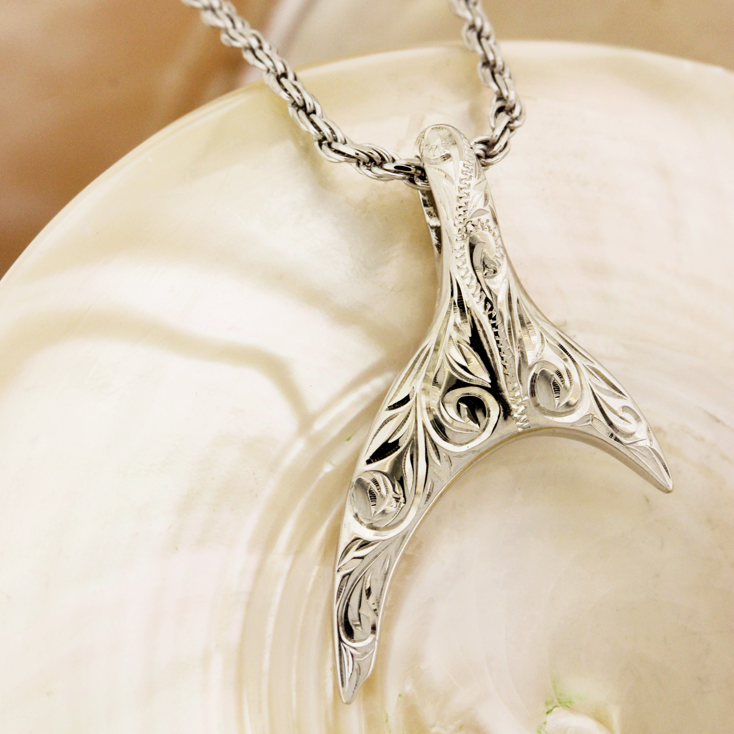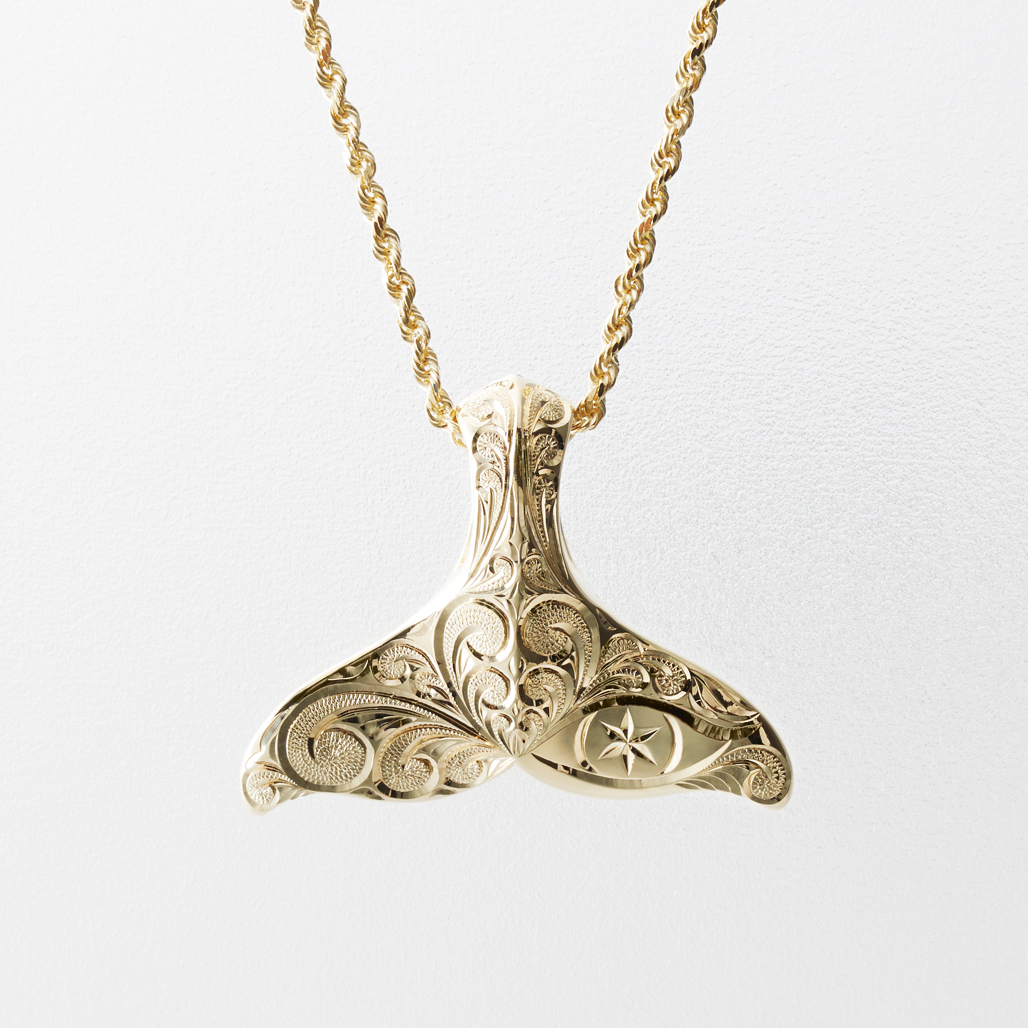 シャークテイルをデザインした、プレミアムな両面彫のハワイアンジュエリーペンダントヘッド〈Sサイズ〉